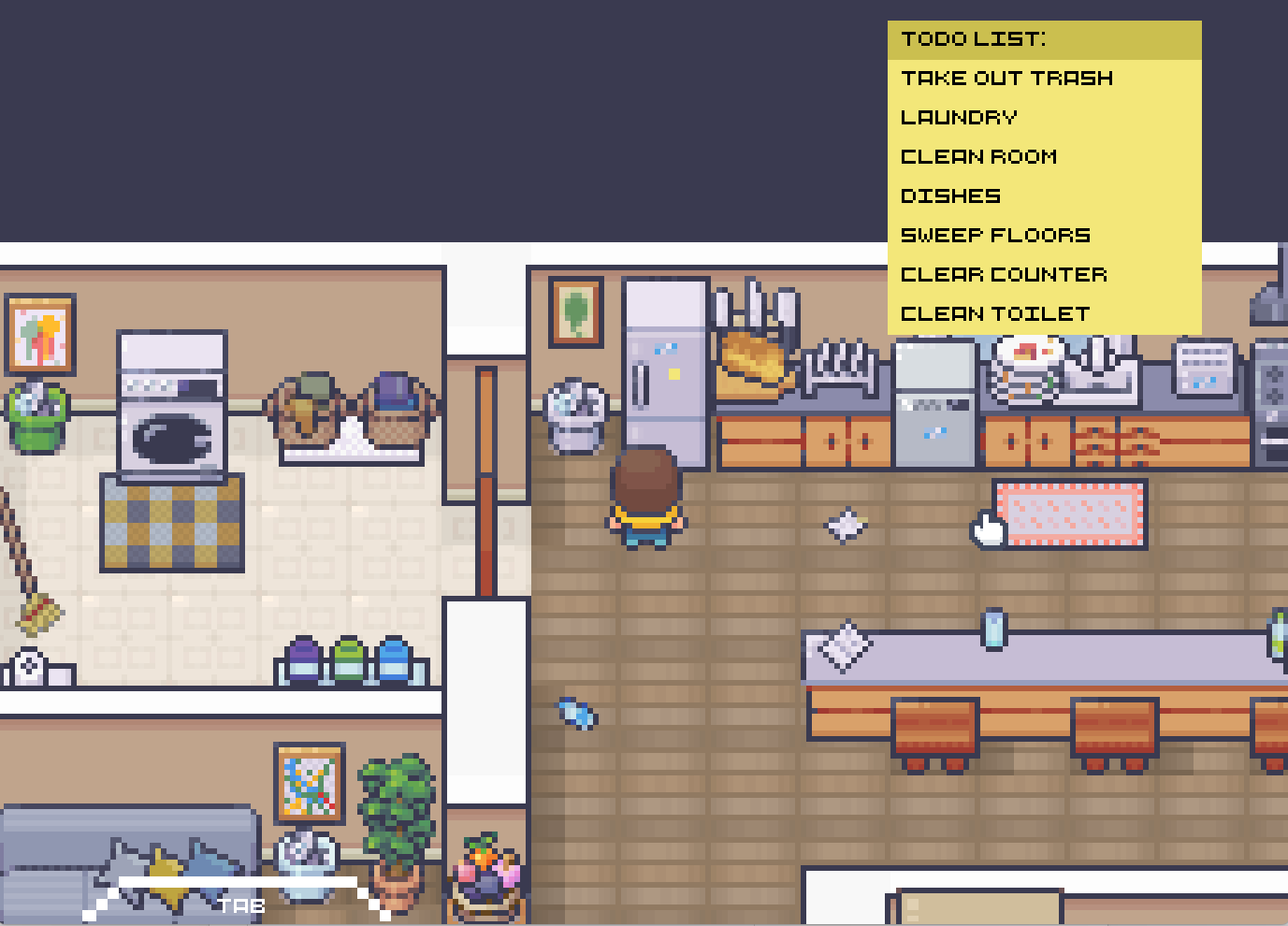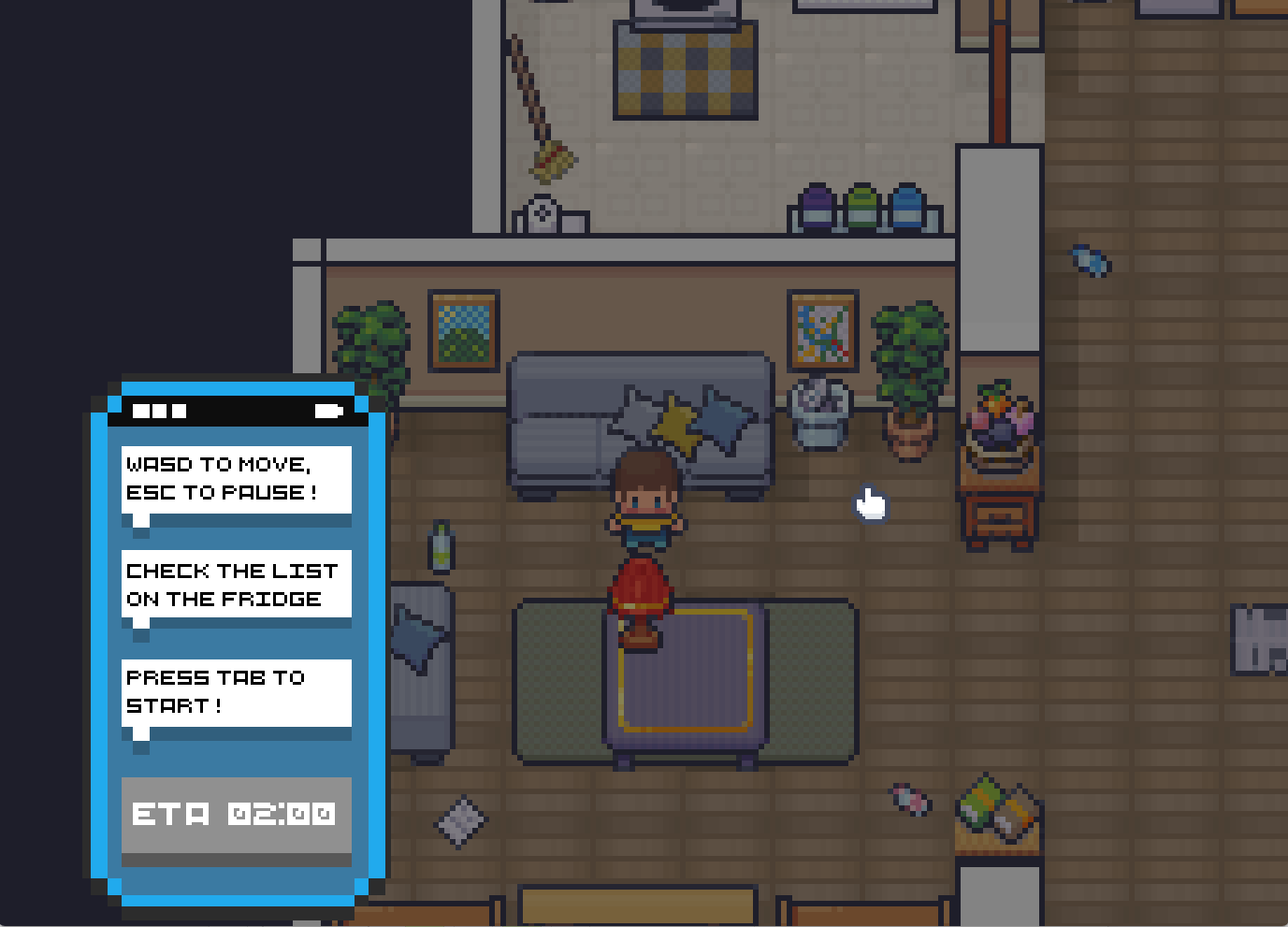 Run around and complete the tasks that are listed on the fridge within the time limit. The timer can be accessed from the phone. You will receive a score at the end with the option to try again.
